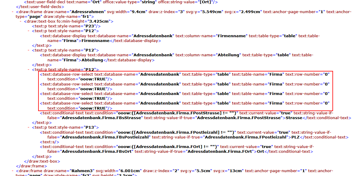 GOTTSEIDANK ... das Ganze ist nur ein Vorlagenfehler. Hier ist ein Screenshot der fehlerhaften Einträge in der Content.xml der *.ott-Datei: http://de.openoffice.info/download/file.php?id=17743 Diese Einträge bewirken das die Bedingungsfelder in derselben Vorlage nicht mehr funtionieren. Der Zusammenhang ist mir nicht klar, falls es von Interesse ist kann ich einen Issue eröffnen und die fehlerhafte Datei anhängen. Gruß Jörg -- Liste abmelden mit E-Mail an: discuss+unsubscribe@de.libreoffice.org Probleme? https://de.libreoffice.org/hilfe-kontakt/mailing-listen/abmeldung-liste/ Tipps zu Listenmails: https://wiki.documentfoundation.org/Netiquette/de Listenarchiv: https://listarchives.libreoffice.org/de/discuss/ Datenschutzerklärung: https://www.documentfoundation.org/privacy